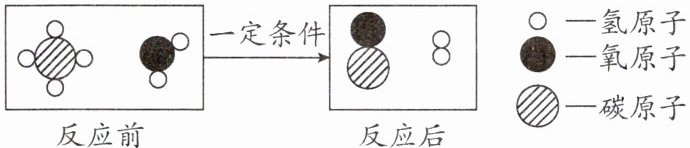 8. (2025·北京期中)甲烷($CH_{4}$)和水反应可以制水煤气(混合气体),其反应前后分子种类变化的微观示意图如下所示,根据微观示意图得出的结论中,不正确的是 ()