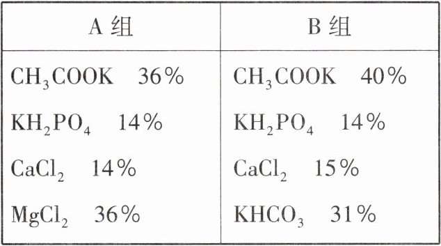 (1) A、B两组融雪剂相比较,____组的$CH_{3}COOK$(乙酸钾)含量高。