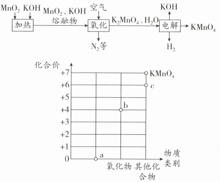 (2)b点表示氧化物,其中锰元素的化合价为+4,氧元素显 - 2价,根据化合物中正、负化合价的代数和为0,b点对应物质的化学式为MnO₂。