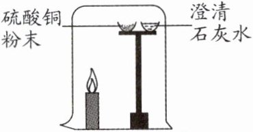 8. 某研究小组用一个大烧杯罩住一支点燃的小蜡烛,并在烧杯内靠近顶部的位置放置适量的硫酸铜粉末和澄清石灰水。