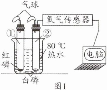 1. (2024·连云港模拟)白磷的着火点是40℃,红磷的着火点是240℃。某同学用足量的白磷和红磷探究燃烧的条件,实验装置如图1所示。实验中测得试管②中氧气的体积分数随时间的变化曲线如图2所示。下列说法正确的是 (