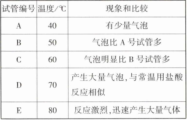 【实验二】选择合适反应温度:往盛有1g直径为2mm大理石的大试管中分别加入5mL相同合适浓度而不同温度的硫酸,观察反应的情况,记录如下表: