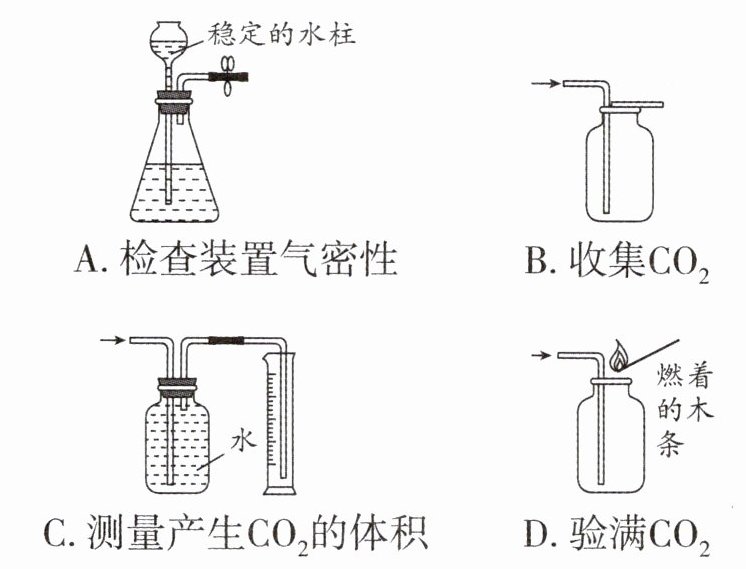 C 解析:因为二氧化碳能溶于水,则用排水法测量产生二氧化碳的体积时,可以在水面上滴一层植物油,防止二氧化碳与水直接接触,气体进入集气瓶时应短进长出,C错误。