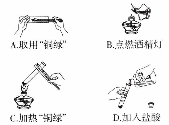 2. 小明发现家中的铜器表面有“铜绿”,小明研究“铜绿”性质的下列实验操作中正确的是 ()