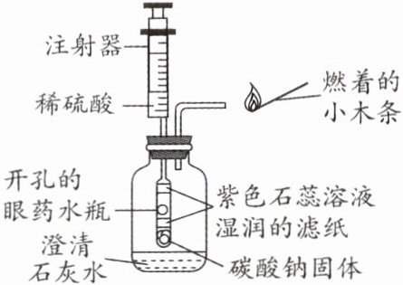 1. (2025·曲靖月考)某化学兴趣小组用青霉素的药瓶、注射器和眼药水瓶设计了如图所示的微型实验装置,用于检验二氧化碳的性质。缓缓推动注射器活塞,滴入稀硫酸后,在眼药水瓶中即可产生二氧化碳气体。请回答: