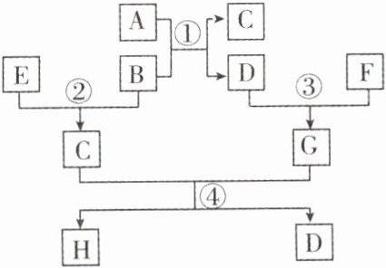 14. (10分)(2024·邯郸二模)A~H是初中化学常见的物质,其中A、B、C、E均为气体,且E有毒。它们之间的转化关系如图所示(反应条件已略去),请回答下列问题。