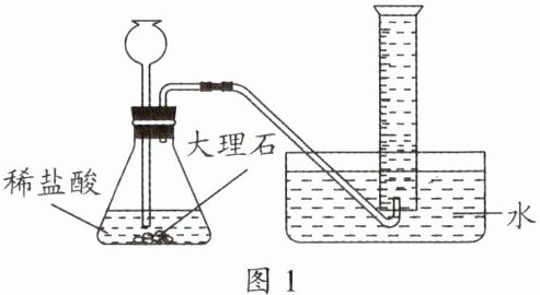 (3)探究溶解速率:该小组用排水法收集$CO_2($如图1),待收集到$100mL CO_2$后,移出导管。每隔一段时间观察并记录量筒内$CO_2$体积。重复实验,所测数据平均值如下表。