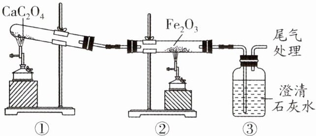 C 解析:因为一氧化碳和氧化铁在加热条件下也能反应生成二氧化碳,所以要证明$CaC_{2}O_{4}$受热分解有二氧化碳生成,必须在加热$Fe_{2}O_{3}$之前,将$CaC_{2}O_{4}$受热分解生成的气体通入装置③中澄清石灰水中,若澄清石灰水变浑浊,证明$CaC_{2}O_{4}$受热分解有二氧化碳生成,C错误。