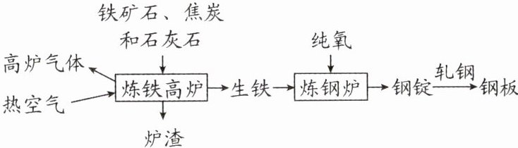 3. 工业炼铁和轧制钢材的主要流程如图: