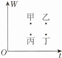 11. [2025·南京江宁区期中]小明对四名同学的做功情况各测量了一次,把四名同学做的功 $ W $ 和所用时间 $ t $ 在坐标系中描点,得到了图中甲、乙、丙、丁四个点,这四名同学中做功功率最大的是 (