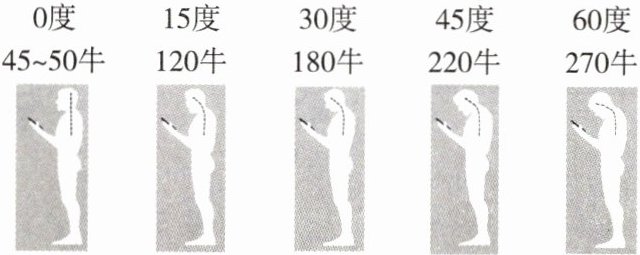 16. (模型建构)人的脊柱起着支撑头部的作用,长时间低头会对颈椎造成损伤,人低头时头部的脊椎可以看作一个杠杆。如图是低头角度与颈椎承受压力的关系,人在低头过程中,头部的重力的力臂