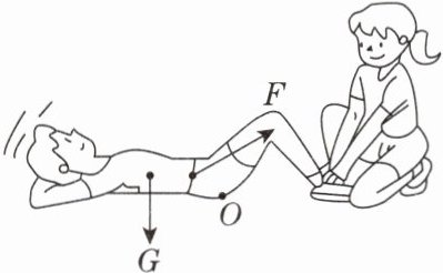 14. [2025·苏州月考]同学们在体育课上做仰卧起坐,前半段背部由平行于地面变成脊柱弯曲,后半段上半身完全离开地面。仰卧起坐时,人体可看成杠杆模型,O为支点,肌肉的拉力F为动力。如图所示,请画出杠杆模型的阻力臂l。