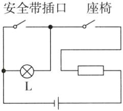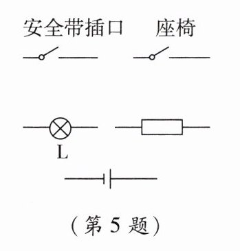 5. 汽车的座椅和安全带插口各相当于一个开关,人坐在座椅上时,座椅开关闭合,指示灯亮;将安全带插入插口时(这时插口开关闭合),指示灯又熄灭。请将如图所示的元件连接成一个符合安全要求的电路图。