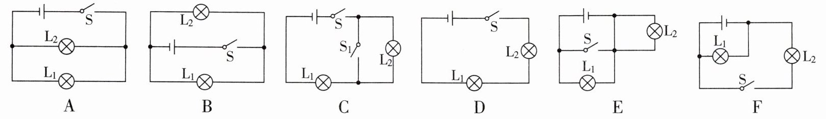 ____,灯泡L₁与L₂并联的电路是____ABF