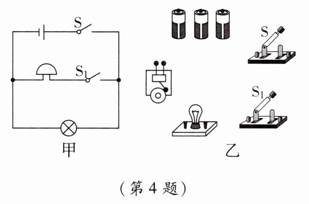 4. 根据图甲的电路图连接实物图图乙。(导线不能交叉)