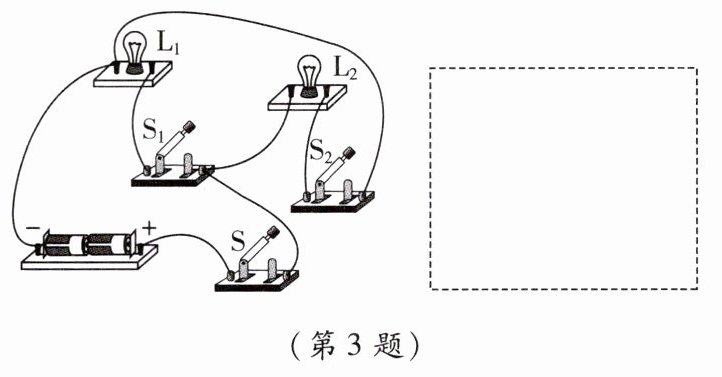 3. 请你根据如图所示的实物连接,在虚线框中画出相应的电路图。