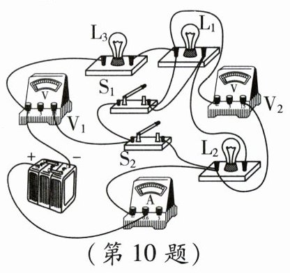 10. [2024·无锡一模]将完全相同的$L_{1}$、$L_{2}$、$L_{3}$三个小灯泡接入如图所示的电路中,电源电压6V保持不变。下列说法中错误的是 (
