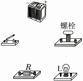 19. [2024·苏州工业园区模拟]小明设计了一个高铁轨道螺栓警报器模型电路,其原理是:金属螺栓连接在电路中,当螺栓松动掉落时,它会与下端的导线分离,此时电灯亮起而发出警报。请用笔画线代替导线,连接以下器材完成电路设计。