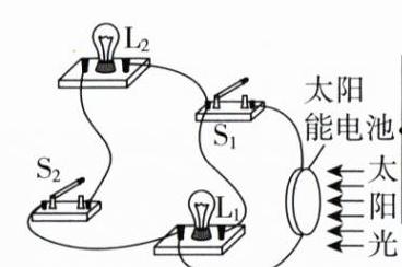 17. [2025·无锡期末]用太阳能电池给两灯供电,请将如图电路连接完整,要求:两灯并联,使$S_{1}$控制整个电路,$S_{2}$单独控制灯$L_{2}$。