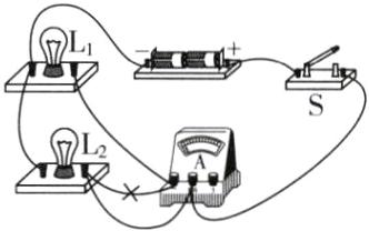 ②(实验操作设计)灯$L_{2}$不发光的原因是由猜想2或猜想3引起的,在不添加器材且不拆除导线的情况下进行判断,具体操作、现象和对应结论是______________________________。
