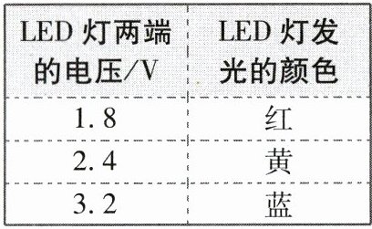 8. (科学推理)[2024·宿迁二模]LED灯发光的颜色与电压的对应关系如表所示,LED灯发光时通过它的电流始终为0.02A。把这样的LED灯接入如图所示电路,闭合开关,当滑动变阻器的滑片在图示位置时,LED灯发出黄色的光。下列方案中可使LED灯发红色光的是 (