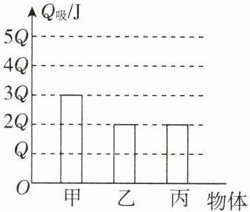 8. 甲、乙两物体质量都为2kg,丙物体质量为1kg,三个物体温度都升高1℃,吸收的热量Q吸如图所示,以下说法正确的是 (