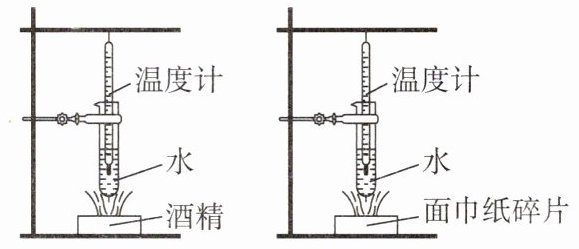 。(3)实验中,酒精和面巾纸碎片燃尽时水温分别是80℃和50℃,用酒精燃烧加热后的水温变化量是