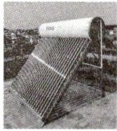 5. 如图所示的太阳能热水器,它的水箱储水量为120kg,热水器上的集热器对太阳能的能量利用效率为40%,在与阳光垂直的地球表面单位面积、单位时间获得的太阳辐射能量用$α= 1400J/(m^2·s)$表示。如果将整箱水的温度从20℃加热到70℃,需要阳光直射5h,那么:[c水$= 4.2×10^3J/(kg·℃)]$