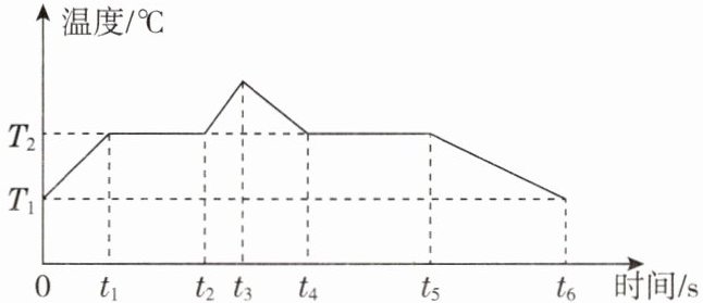 3. (图像分析)[2024·成都]某固态物体的质量为m,其物质的比热容为c,用稳定的热源对它加热(物体在相同时间内吸收的热量相等),到$t_{3}$时刻停止加热,然后让其冷却。上述过程中记录不同时刻的温度,最后绘制出温度随时间变化的图像(如图)。下列说法正确的是 (