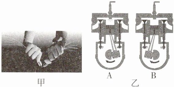 3. [2025·常州期中改编]如图甲所示,用手弯折铁丝,铁丝会变热,此过程发生的能量转化与图乙中的汽油机在图