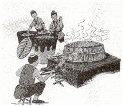 2. (古代典籍)[2025·西安铁一中期中]《齐民要术》中对醋的制作工艺有记载:“作大豆千岁苦酒(醋)法:用大豆一斗,熟汰之,渍令泽。炊,曝极燥。以酒醅灌之。任性多少,以此为率。”蒸煮是酿醋过程中的一个重要工序,如图所示是将大豆进行蒸煮的过程,下列说法正确的是(