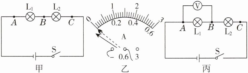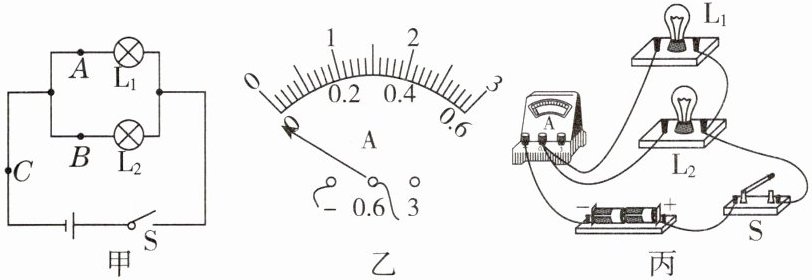 (2)图甲是他们设计的电路图,图丙是他们测量电流时连接的实物电路,此时电流表测量的是______(选填“A”“B”或“C”)处的电流。