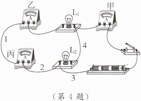 B. 为完成实验,可将导线3接在$L_2$上的接线端改接在乙电流表的负接线柱上