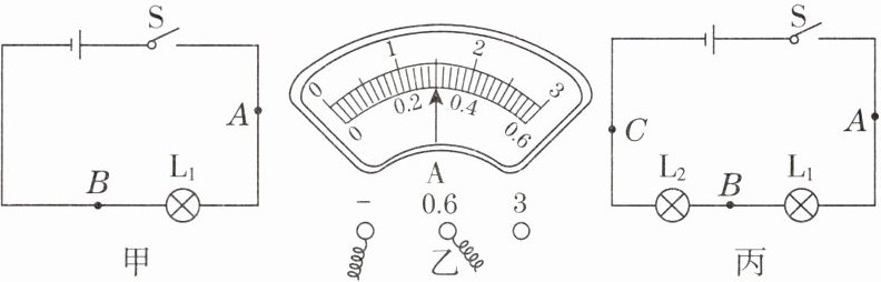 故障。(3)排除故障后,用电流表测出A点电流,如图乙所示,则$I_A = $