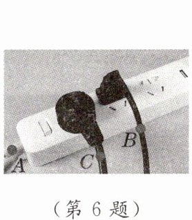 6. [2024·连云港一模]如图所示,为家用插线板示意图。图中A线接入家庭电路中,B线接台灯,C线接取暖器,两个用电器均正常工作时,A、B、C三处的电流分别为$I_{A}$、$I_{B}$、$I_{C}$,则它们的大小关系正确的是(