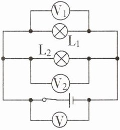 3. 如图,灯泡$L_{2}比L_{1}$亮,电压表V示数为4.5V,下列说法正确的是(