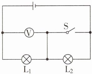 5. 如图所示的电路中,当开关S闭合时,电压表示数为8V,当开关S断开时,电压表示数为5V,则此时灯$L_{1}和L_{2}$两端的电压分别为(