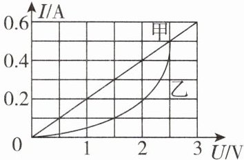 11. 如图所示是电器元件甲和乙的I-U图像。若将甲、乙串联在某一电路中,当电路中的电流为0.1A时,电源电压为