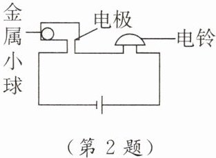 2. (模型建构)如图所示为一种倾斜监测报警装置的简易电路图,电路中的传感器是一个用玻璃壳密封的内部装有可自由滚动的金属小球与电极的装置,当倾斜监测报警装置向特定方向倾斜时,电铃便会报警,下列说法正确的是 (