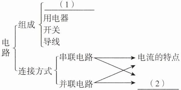 7. (物理观念)[2024·连云港]某同学自主学习《简单电路》一章后,整理部分知识结构图如图所示,请补全有关内容。
