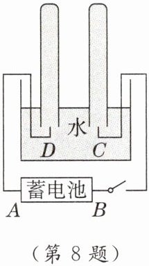 8. (跨学科实践)如图是电解水实验原理图,蓄电池在向外供电时把