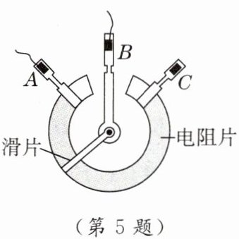 5. (教材素材题)电位器也是一种变阻器,如图所示是电位器的结构和连入电路的示意图,A、B、C是接线柱。当滑片向C端旋转时,接入电路的电阻(