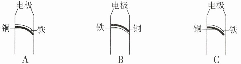 (2)已知铜的热膨胀程度大于铁的热膨胀程度,平直的铜铁双金属片受热后将向______(选填“铜”或“铁”)片方向弯曲。下列选项是双金属触片受热后在跳泡内的结构示意图,其中合理的是______。