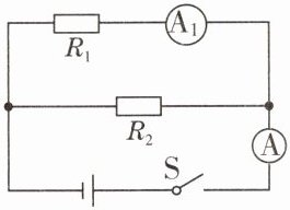 解:由电路图可知,闭合开关S,$R_{1}$与$R_{2}$并联,电流表A测干路电流,电流表$A_{1}$测通过$R_{1}$的电流