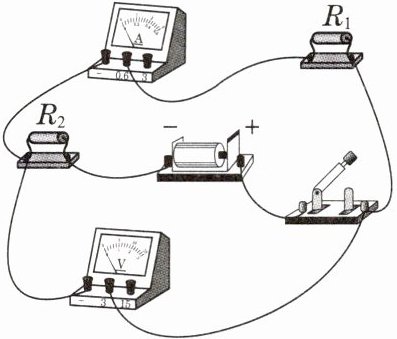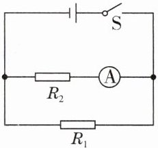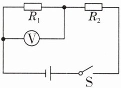 2. 如图所示,电源电压为3V且恒定不变,电阻$R_{1}= 10Ω,R_{2}= 5Ω$,总电阻为