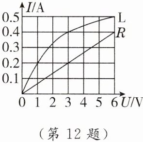 12. [2024·黑龙江]如图为灯泡L和定值电阻R的I-U图像,若将L和R并联在电源电压为3V的电路中,干路电流为