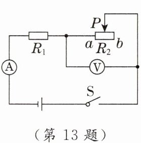 13. [2025·无锡期末]如图所示,电源保持6V的电压不变,开关S闭合后,电流表的示数是0.4A,电压表的示数为2V,则电阻$R_{1}$的阻值是