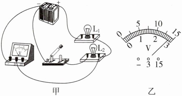 (选填“$L_{1}$”或“$L_{2}$”)两端的电压,电压表的示数如图乙所示,电压表示数为$2.8$