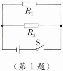 1. 如图所示的电路中,电阻阻值$R_{1}= 2R_{2}$。开关S闭合后,电阻$R_{1}$、$R_{2}两端的电压分别为U_{1}$、$U_{2}$,通过$R_{1}$、$R_{2}的电流分别为I_{1}$、$I_{2}$,下列判断正确的是 (