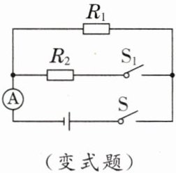 (变式 增加开关)如图所示电路,电源电压保持不变。只闭合开关S,电流表的示数为0.2A,再闭合开关$S_{1}$,电流表的示数变化了0.3A,$R_{1}与R_{2}$的电阻之比是 (